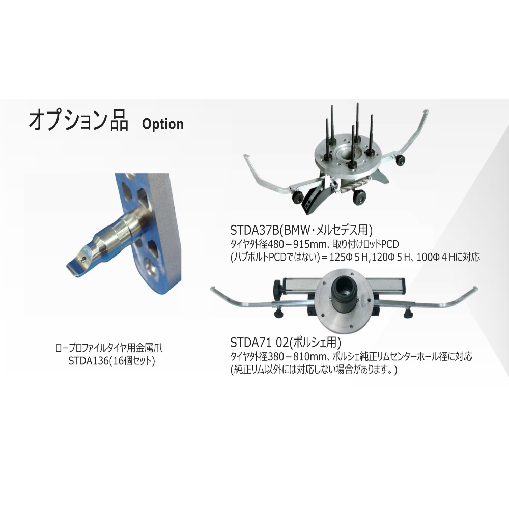 ・適用タイヤ外径|480-760mm(標準タイヤフック)、680-910mm(SUVタイヤフック)